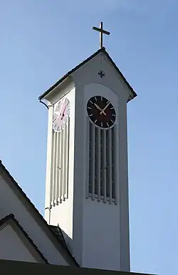 Da die Anzahl der Katholiken nach dem Zweiten Weltkrieg anwuchs, begannen 1954 die Vorarbeiten für die Verlängerung der Kirche, welche 1955 abgeschlossen werden konnte. 1956 wurde neben der verlängerten Kirche ein Kirchturm errichtet, in den die Glocken aus dem bisherigen Dachreiter umgesiedelt wurden. Am 1. und 2. Juni 1957 wurde die fertiggestellte Kirche durch Bischof Christian Caminada eingeweiht.[8] Als im Jahr 1963 im Kanton Zürich die katholische Kirche öffentlich-rechtlich anerkannt wurde, erfolgte die Gründung der katholischen Kirchgemeinde Bauma, zu der die vier politischen Gemeinden Bauma, Bäretswil, Fischenthal und Sternenberg gehören.