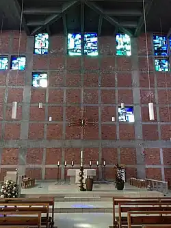 Bereits 1948 begann der Aufbau einer Notkirche,[11] die dann 1950 genutzt werden konnte. Dieses Gebäude ist heute der Pfarrsaal.