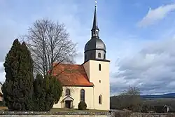 Die Kirche war im 12. Jahrhundert die Schlosskapelle von Schloss Emtmannsberg. Vom quadratischen Chorturm des 14. Jahrhunderts sind die unteren Geschosse erhalten. Er wurde 1576 aufgestockt. Sein schiefergedecktes achteckiges Geschoss, das den Glockenstuhl mit den heutigen vier Kirchenglocken beherbergt, und die Welsche Haube erhielt er erst 1666/67. Gleichzeitig wurde an ihn nach Westen das Langhaus ohne Chor und ohne Rücksicht auf die Achse des Turms angebaut.