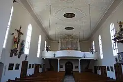 Aus der Zeit der Erbauung oder kurz danach stammen die Kreuzigungsgruppe an der rechten Schiffswand sowie an der linken Schiffswand die Kanzel mit Rocailleornamenten am Korb und dem Erzengel Michael sowie zwei kleinen Engeln auf dem Schalldeckel.