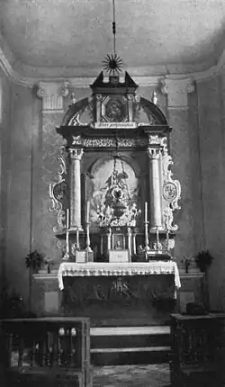 Im 18. Jahrhundert erfolgten durch den Besitzer der Herrschaft Theusing bauliche Veränderungen im Barockstil. Das romanische Eingangsportal wurde vergrößert und die Außenmauern durchbrochen für größere Fenster. In der Etage über der Sakristei wurde ein Gebetsraum (Oratorium)[1] eingerichtet, der durch eine neu angelegte Außentreppe erreicht wurde und verglaste Fenster zum Presbyterium enthielt. Erneuert wurde auch die Ausstattung der Kirche. In die neu gerundeten Mauerecken wurden Pilaster gesetzt.