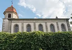 Im Jahr 1723 wurde der baufällige Chorturm aus dem Jahr 1470 zu zwei Dritteln abgetragen. Sein heutiges Aussehen mit einer Glockenhaube, einem quadratischen Geschoss, das die Turmuhr und einem achteckigen, das den Glockenstuhl beherbergt, erhielt er 1725 nach einem Entwurf von Carl Friedrich von Zocha. Das neugotische, mit einem Satteldach bedeckte Langhaus aus fünf Achsen der Saalkirche wurde 1865 bis 1869 nach den Plänen des Gunzenhäuser Architekten Gustav Renner erbaut.