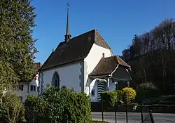 - ↑ Statuen möglicherweise aus der 1968 demolierten alten Pfarrkirche von Wünnewil.