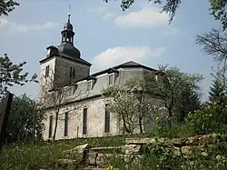 Der romanische Kirchturm stammt vermutlich aus dem 12. Jahrhundert. An der Ostseite wurde anstelle einer Apsis das Langhaus angebaut. Der Turm wurde 1718, das Langhaus 1764 erneuert. Nach der politischen Wende in Ostdeutschland wurde das Gebäude grundhaft instand gesetzt.[2]