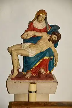 Im Seitenchor sind drei Passionsreliefs aus Bildstöcken eingelassen. Zwei stammen von Bernd Meiring (1631–1703), das mittlere ist aus dem 16. Jahrhundert.[1]