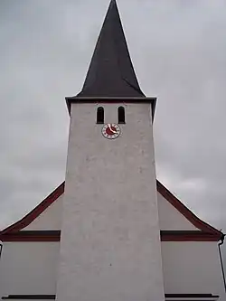 Zwei gusseiserne, wappengeschmückte Grabplatten der Herren von Bicken aus den Jahren 1529 und 1538 wurden aus dem Innenraum der Kirche entfernt und an der Außenmauer angebracht.[15] Eine dieser zwei Grabplatten war für den Chorherrn von St. Alban in Mainz errichtet worden.[16]