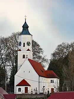 Die im Kern spätgotische Saalkirche wurde im letzten Viertel des 15. Jahrhunderts erbaut und 1748 nach einem Entwurf von Jakob Jehle völlig umgestaltet. Sie besteht aus einem Langhaus, einem eingezogenen, dreiseitig geschlossenen Chor im Osten, einem Chorflankenturm auf quadratischem Grundriss an der Nordwand und der Sakristei, auf der sich ein Oratorium im Obergeschoss befindet, an der Südwand des Chors. Der Chorflankenturm wurde 1760/61 mit einem achteckigen Geschoss aufgestockt, das die Turmuhr und den Glockenstuhl beherbergt, und mit einem pyramidenförmigen Helm bedeckt. Der Innenraum des Langhauses ist mit einer Flachdecke überspannt, der des Chors mit einem Stichkappengewölbe. Über dem Chorbogen befindet sich das Wappen des Klosters Roggenburg. Der Hochaltar wurde 1751 von Dominikus Bergmüller gebaut. Das Antependium wurde 1772 angebracht. Die Kanzel aus Stuckmarmor wurde 1791 errichtet. Ein großes Vortragekreuz von um 1766 wird dem Sohn von Lorenz Luidl zugeschrieben.
