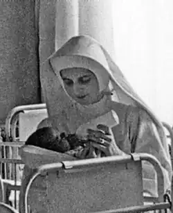 1969 begann der Rückzug der Grauen Schwestern, deren Zahl nach 1945 bis zu 55 betragen hatte, zunächst aus zwei Stationen. 1974 waren sie vollends durch Krankenschwestern ersetzt. 1965 hatte die eigene Ausbildung von Schwesternhelferinnen begonnen, und 1976 erfolgte die Eröffnung der Medizinischen Fachschule zur dreijährigen Ausbildung von Krankenschwestern mit 75 Plätzen. 1980 entstand für diese Schule ein Internat mit Unterrichtsräumen in Plattenbauweise.