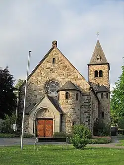Die heutige Kirche wurde 1912 nach Entwurf des Bochumer Architekten Carl Pinnekamp (1872–1955) errichtet, die Grundsteinlegung hatte an Pfingsten stattgefunden. Der kleine neuromanische Saal wurde aus bossiertem Bruchstein gemauert, der Turm steht an der Südseite des Chors. Der Innenraum ist mit einem Kreuzgratgewölbe ausgestattet, die Wangen des Kirchengestühls und der Beichtstuhl sind in späten Jugendstilformen gehalten, sie stammen aus der Bauzeit. Andere Ausstattungsgegenstände wurden aus dem Vorgängerbau übernommen.[2] Aus finanziellen Gründen erfolgte der Anstrich des Innenraums erst drei Jahre nach Einweihung der Kirche.[4]