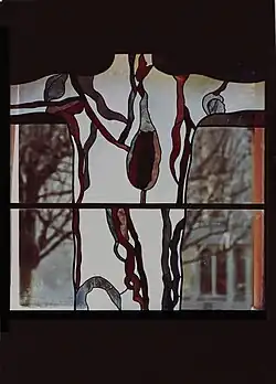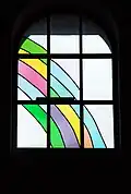 Als Ergänzung zum Fensterzyklus von Max Rüedi schuf Ferdinand Gehr im Jahr 1980 schliesslich noch ein kleines Glasfenster in der nördlichen Ecke der Kirche mit einem Blumenmotiv.[20]