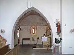 - Die Figuren der heiligen Barbara im Chor und der Madonna mit Kind vor der Turmkapelle stammen aus dem Ende des 15. Jahrhunderts.