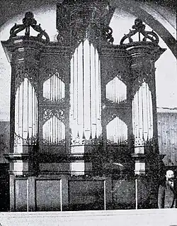 Von der über 200 Jahre alten Orgel, über deren Bau waren weder Angaben bei deren Abbruch noch in Kirchenakten auffindbar, war lediglich deren wertvolle Fassade einbehalten worden. Deren greller Ölfarbenanstrich, der in den vorhergehenden Jahrhundert manches Kunstwerk entstellte, war entfernt und der dunkle Naturton des alten Eichenholzes wiederhergestellt worden.