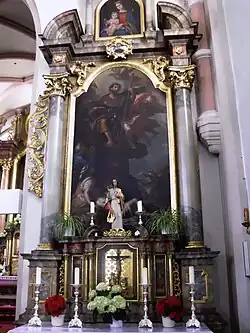 An den Langhauswänden sind innen Grabdenkmäler derer von Hegnenberg von 1694, 1697 und 1786 eingemauert; die Freiherren von Hegnenberg besaßen die Hofmark Oberdolling seit 1692.[13] Ein weiterer Grabstein erinnert an den Jesuiten Friederich Roman Gebhard, Doktor der Theologie und Pfarrer von Oberdolling, † 17. Januar 1803.