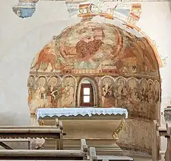 Die Kirche befindet sich in einsamer Lage auf einer bewaldeten Erhebung in 1111 Meter Seehöhe auf dem Ritten. In unmittelbarer Nähe verläuft der Erdpyramidenweg und die Trasse der Rittner Seilbahn. Im Jahr 1289 wird die Kirche erstmals urkundlich erwähnt. Aus dieser Zeit stammen noch die Langhauswände und die Rundapsis mit ihren Fresken. Diese stellen Christus Pantokrator in der Mandorla dar, der von den Evangelistensymbolen und von Engeln umgeben ist. Darunter sind die Apostel zu sehen. Von der gotischen Ausmalung des 14. Jahrhunderts sind geringe Reste erhalten, der Kirchturm, der etwas abgesetzt vom Langhaus errichtet wurde, stammt aus der Zeit um 1400. Im Zuge eines größeren Umbaus im 17. Jahrhundert entstanden das Tonnengewölbe im Langhaus, die Fenster und Türen sowie das steingerahmte Schulterbogenportal. An der Decke befinden sich in einfachen Stuckrahmen Fresken der Heiligen Jakobus, Blasius und Erhard sowie der Heiligen Georg und Martin.