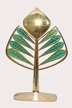 Querrechteckiger in der Mitte hochgewölbter Fuß mit gerundeten Ecken. Die Oberfläche ist glatt poliert. Mittig runder, sich nach oben stark verjüngender Schaft mit glatt polierter Wandung. An diesen sind zu jeder Seite vier lanzettförmige „Blätter“ mit grüngelb-blauem Emaille auf der Vorderseite angelötet. Die Blätter werden auf jeder Seite von einem breiten, flachen Rahmen aus vergoldetem Silber. Die Monstranz ist unter dem Fuß am Rand gestempelt: „S – eine Mondsichel – eine Krone – 925“ (s. Detailfoto). Ein Ehepaar aus Wansen hatte vor der Flucht aus Schlesien mehrere Goldstücke in einem Spazierstock versteckt. Anlässlich ihrer Silberhochzeit übergab sie diese der Gemeinde für eine Monstranz. Das darüber hinaus fehlende Geld hat Pfarrer Herbert Mischkowsky persönlich gespendet. Beschreibung: Gesamtansicht der Vorderseite der Monstranz, s. Foto.