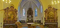 Der Altarprospekt wirkt wie eine große Theaterbühne und zieht die Blicke auf sich. In seinem Zentrum steht der Hochaltar.[5]