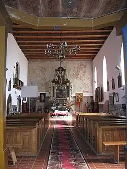 Die Kirche wird in das dritte Viertel des 14. Jahrhunderts datiert. Im Jahr 1332 verlieh Hochmeister Ludolf König dem Dorf eine kulmische Handfeste, wobei die Pfarrkirche mit vier Freihufen dotiert wurde. Vermutlich im dritten Viertel des 14. Jahrhunderts wurden die Nordhälfte des Baus teils in Fachwerkbauweise sowie die Sakristei errichtet. Gegen Ende des 14. Jahrhunderts wurde die Ostmauer des südlichen Abschnitts in Backstein errichtet. Die Westmauer des südlichen Abschnitts wurde im 15. Jahrhundert in Backstein errichtet, auch der Chorgiebel wurde neu errichtet. Reparaturen wurden 1823 und 1854 vorgenommen. Im Jahr 1855 erlitt die Kirche schwere Schäden. Der Holzturm wurde 1856 abgebrochen und die unteren Mauerbereiche und der Giebel erneuert. 1994 erfolgten der Neubau des Westturms und der Westmauer in Backstein.