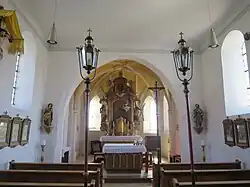 Der 1684 gebaute Hochaltar wurde 1830 überarbeitet. Das Altarretabel wird von den Skulpturen des Jakobus des Älteren und des Apostels Andreas flankiert.