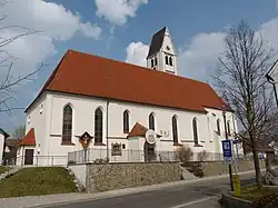 Der Kern des Kirchengebäudes stammt vermutlich aus der zweiten Hälfte des 15. Jahrhunderts. Im Jahr 1549 wurde die Kirche nach einem Umbau neu geweiht. Eine neugotische Erneuerung wurde 1881 durchgeführt. Das Langhaus wurde in den Jahren 1952/1953 um zwei Achsen in Richtung Westen verlängert.[3]