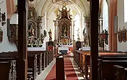 Im Retabel des um 1770 gebauten Hochaltars ist Jakobus der Ältere dargestellt. Auf den Opfergangsportalen stehen die Heiligen Benno und Sebastian, auf die Türen sind die heilige Notburga und der heilige Isidor aufgemalt.