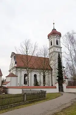 Erbaut wurde die Rokoko-Kirche von 1746 bis 1748 nach den Plänen des Architekten Johann Baptist Wiedemann aus Ehingen. Die Ausgestaltung des Innenraumes ist das Werk zweier bekannter Künstler, des Stuckateurs Joseph Anton Feuchtmayer aus Augsburg und des Freskomalers Joseph Wannenmacher aus Tomerdingen. Der Hochaltar ist von 1733 und stammt aus der 1811 abgebrochenen Abteikirche Fultenbach bei Dillingen.