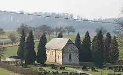 Rund um die alte Kirche befand sich der ehemalige Friedhof des Kirchspiels. Einige alte Grabsteine aus dem 18. Jahrhundert sind erhalten. Teil des Friedhofs ist ein Bildstock mit einer Nachbildung der Madonna von Banneux. Östlich des Kirchturms steht ein Ehrenmal für die Gefallenen der Weltkriege. Es wurde 1931 aufgestellt, und 1950 ergänzt. Der ehemalige Friedhof und die alte Kirche sind außer an der durch Gebäude abgeschlossenen Südseite von einer bis zu 4 Meter hohen und 0,6 Meter dicken Mauer aus Basaltstein umgeben und liegen etwa 3 Meter über dem umgebenden Gelände.