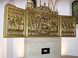 In der Apsis steht das Retabel des früheren Hochaltars. Es handelt sich um eine Kopie der sog. Mindener Goldenen Tafel (urspr. im Mindener Dom, heute im Berliner Bode-Museum), die 1891 durch den mit der Restaurierung des Originals betrauten Bildhauer Anton Mormann (1851–1940) (Wiedenbrücker Schule) angefertigt wurde. Die ursprünglich ebenfalls vorhandene Predella wurde nach der im Zuge des Zweiten Vatikanischen Konzils erfolgten Liturgiereform beseitigt und anlässlich der letzten Kirchenrenovierung durch einen modernen Sockel ersetzt, in den die Reliquien der Heiligen Pusinna eingelassen sind.