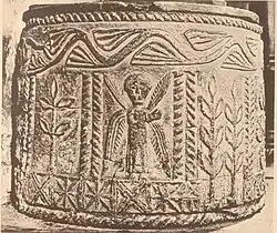 - Der romanische Taufstein ist wohl von der ersten Hälfte des 12. Jahrhunderts. Die Wandung ist vollkommen reliefiert. Die Darstellung der Engelsgestalten wirkt ungelenk. In stark schematisierter Ornamentik sind noch das Agnus Dei mit Kreuz und Fisch sowie Vögel dargestellt.