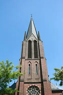 Im seit der Reformation protestantischen Leichlingen wurde, nach provisorischen Anfängen, 1811 wieder eine reguläre katholische Pfarrei errichtet. Auf dem Johannisberg entstand die erste Kirche, ein kleiner Bruchstein-Saalbau.[1] Als diese gegen Ende des Jahrhunderts nicht mehr ausreichte, begannen die Planungen für den Neubau an zentralerer Stelle. Mit dem Entwurf wurde der Kölner Architekt Theodor Kremer beauftragt. Die Grundsteinlegung fand am 17. Mai 1903 statt. Die Kirchweihe wurde am 1. August 1904 vom Kölner Weihbischof Joseph Müller vorgenommen.[2] In der alten Kirche am Johannisberg werden, nach Profanierung und verschiedenen Nutzungen, heute wieder Gottesdienste gefeiert.