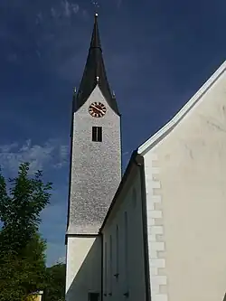 - ↑ Kirchen und Kapellen in Oberstaufen. In: oberstaufen.info. Abgerufen am 23. Dezember 2021.