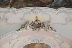 Die 1758/59 geschaffenen Deckenfresken tragen mehrfach die Signatur von Johann Baptist Baader. Der aus Lechmühlen, heute ein Ortsteil der Gemeinde Fuchstal, stammende Maler ist auch unter dem Namen „Lechhansl“ bekannt.