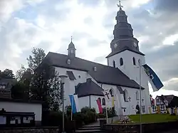 1712 erhielt der quadratische Turm im Westen der Kirche eine dreifach gestufte, achtseitige Barockhaube. Hierbei handelt es sich um ein Werk des Hallenberger Meisters Konrad Hesse, der auch Arbeiten in Hallenberg, Wormbach und Hesborn durchführte. Vorher hatte der Turm ein viereckiges, bleigedecktes Pyramidendach.