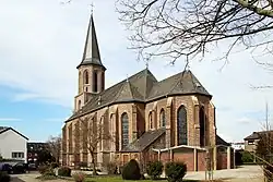 Der Grundstein der heutigen Pfarrkirche wurde am 5. September 1856 gelegt. Zwei Jahre später war die neue Kirche fertiggestellt, sodass 1858 die alte, romanisch-gotische Kirche abgerissen wurde. Diese Vorgängerkirche befand sich auf dem Alten Friedhof ungefähr dort, wo heute das Kriegerdenkmal steht. Die feierliche Kirchweihe und Konsekration nahm der Kölner Weihbischof Johann Anton Friedrich Baudri am 7. Oktober 1860 vor. Die Pläne zum Bau der Pfarrkirche stammen aus den Händen des späteren Kölner Diözesanbaumeisters Vincenz Statz.