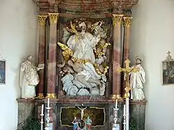 Zur Kirchenausstattung gehört ein um 1742 gebauter Hochaltar, der dem Umkreis von Anton Sturm zugeschrieben wird. Auf dessen Altarretabel ist Johannes Nepomuk dargestellt. Seitlich wird er von den von Melchior Eberhard gebauten Statuen des Ignatius von Loyola und des Franz Xaver flankiert.