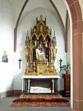 | Ausstattungsstil | Hochaltar, Seitenaltare, Kanzel, Zelebrationsaltar, Ambo, Kreuzweg, Apostelfiguren, Taufstein, Kreuzigungsgruppe, Johannes Nepomuk, Marienfigur |