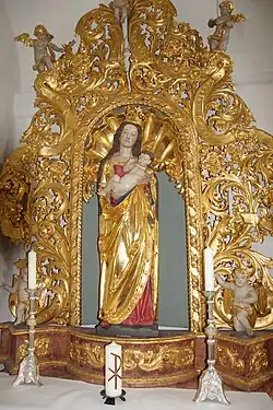 Die reiche Barockausstattung besteht aus mehreren prächtigen barocken Altären. Der Hochaltar ist eine Stiftung des in Wien tätigen Kaufmanns Johann Michael Niller († 1780). Der aufwändig gestaltete Säulenaufbau wurde 1780 von dem Amberger Bildhauer Philipp Lutz geschaffen und 1785 von Wolfgang Pösl gefasst. Das Altarblatt zeigt die Taufe Christi, flankiert von den Seitenfiguren der Heiligen Zacharias und Elisabeth, darüber die Erzengel Michael und Gabriel, zuoberst Gottvater und den Heiligen Geist.