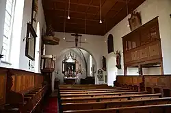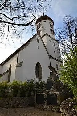 Die Pfarrkirche wurde um 1360 anstelle des karolingischen Vorgängerbaus erbaut, in dem 916 die Synode von Hohenaltheim stattfand und von dem nichts mehr erhalten ist. Die Saalkirche besteht aus einem Langhaus, das 1755 nach Westen verlängert wurde, einem gleich breiten Chor im Osten, dem 1617/18 errichteten Chorflankenturm auf gotischen Grundmauern an dessen Nordwand und einem Anbau an der Südwand des Langhauses, der ursprünglich für die Fürsten reserviert war, und heute als Sakristei und Vestibül dient. Der Chorflankenturm wurde mit einem achteckigen Geschoss, das die Turmuhr und den Glockenstuhl beherbergt, aufgestockt und mit einer Zwiebelhaube bedeckt. Der Innenraum des Langhauses ist mit einer Holzbalkendecke überspannt, der des Chors mit einem Kreuzrippengewölbe. Die Kirchenausstattung ist neugotisch, das Taufbecken stammt jedoch aus dem 11. Jahrhundert. Ein Tafelbild, auf dem die Grablegung dargestellt ist, wurde 1762 gestiftet.