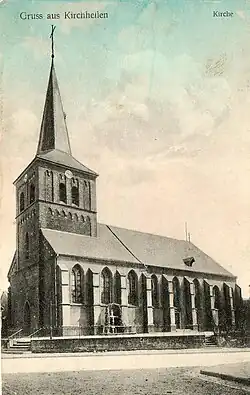 Die Ursprünge einer Kirche in Kirchhellen reichen bis in das Jahr 1032 zurück. Dort schenkt der Kölner Erzbischof Pilgrim der Abtei Deutz mehrere Kirchen. Namentlich ist Kirchhellen dort zunächst nicht erwähnt, allerdings nennt ein späterer Küster der Abtei, Aedituus Theoderich, in einer Handschrift, dass die Kirchhellener Kirche unter diesen sei.[1] In einer päpstlichen Bulle aus dem Jahre 1147 wird die Kirche in Kirchhellen genannt. Am 11. Mai 1161 wird Kirchhellen in einer Urkunde des Papstes Viktor IV. aufgeführt. Auch nennt Papst Innozenz III. am 2. April 1207 die Kirche in Hillen als Besitz des Klosters Deutz.