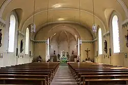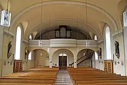Da die Kirche im Zweiten Weltkrieg schwer beschädigt wurde, hat sich von der Vorkriegsausstattung nicht viel erhalten. Die in den 1880er Jahren angebrachten Gemälde im Chor, der Hochaltar, sowie die farbenprächtigen Glasfenster mit den Darstellungen aus dem Leben Jesu Christi und der heiligen Maria sind durch die Kriegseinwirkungen vollständig verloren gegangen.[2] Erhalten hat sich die Orgel aus dem Jahr 1900.[4]