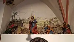 Der linke Seitenaltar aus den Jahren 1873–1875 wurde ebenfalls von Kern und Hitzinger geschaffen und zeigt im Schrein die Beweinung Christi, im Gesprenge die Mutter Anna. Die Innenseite der Flügel ist mit Szenen aus dem Alten Testament auf Goldgrund versehen: links oben die Vertreibung aus dem Paradies, unten Kain und Abels Opfer, rechts oben Isaaks Opfer und unten das Paschafest. Die Außenseite zeigt links Joseph mit dem grünenden Stab als Hinweis auf die Vermählung mit Maria und rechts Maria, geschmückt wie das himmlische Jerusalem (Jesaja 62,1-5; Offenbarung 21). In der Predella sind zu beiden Seiten des Tabernakels je ein Engel und Episoden zum jungen Propheten Samuel (Hanna übergibt Samuel an Eli und Samuel wird von Gott berufen) aus dem Alten Testament (1 Samuel 1–3) zu sehen[2].