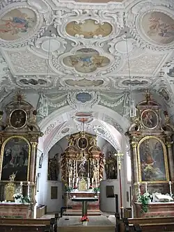 Eine erste Orgel erhielt die Kirche 1754. 1891 wurde sie ersetzt durch eine pneumatische Kegelladen-Orgel mit sieben Registern auf einem Manual und Pedal, die von Franz Borgias Maerz (München) gebaut wurde. Die Disposition lautete:[2]