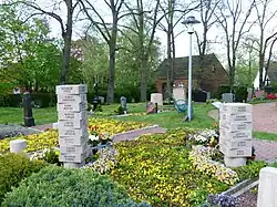 Der Friedhof rund um die Kirche ist etwa einen Hektar groß und erstreckt sich vor allem westlich, südlich und östlich der Kirche. Der Haupteingang liegt östlich. Nördlich, beiderseits einer direkten Zufahrt von der Arberger Heerstraße zum Nordportal, liegen nur wenige Gräber.
