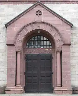 Die Kirche steht im östlichen Lindenhof an der Bellenstraße. Ihr Kirchturm zeigt zusammen mit dem Kirchturm der protestantischen Johanniskirche und dem Wasserturm auf dem John-Deere-Gelände schon von weitem den Stadtteil an. Die dreischiffige Basilika wurde im Stil der italienischen Romanik aus rotem Mainsandstein und hellem Sandstein aus der Pfalz errichtet. Sie ist 53 Meter lang, 20,30 Meter breit und im Mittelschiff 9,70 Meter hoch. Der Chorflankenturm war ursprünglich 51 Meter hoch. Das spitze Dach wurde allerdings nicht rekonstruiert, sondern durch ein flaches Pyramidendach ersetzt. Der Chor schließt mit einer halbrund gewölbten Apsis ab. Zwölf Granitsäulen tragen mit ornamentierten Kapitellen die die Mittelschiffwände tragenden Rundbögen.