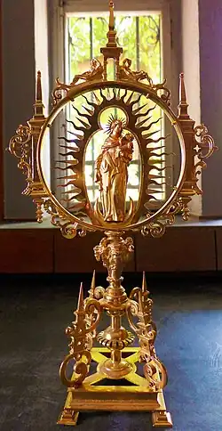 1967 wurde die vordere rechte Seitentür entfernt und zugemauert und die so entstandene Nische als kleine Marienkapelle gestaltet.[29] Die Verglasungen der kleinen Spitzbogenfenster der Kapelle zeigen in abstrahierender Gestaltung marianische Symbole. Die Kapelle enthält eine Kopie des Gnadenbildes der Schwarzen Madonna von Tschenstochau aus dem Kloster Jasna Góra.