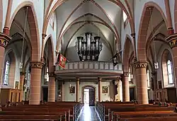 Die Gemeinde erwarb 1905 die Barockorgel, die Johann Michael Stumm 1729 für das Agnetenkloster in Trier gebaut und die nach dessen Auflösung auf dem Gesangschor im Trierer Dom Aufstellung gefunden hatte.[6] Edmond Alexandre Roethinger aus Straßburg erstellte 1930 in dem Gehäuse eine neue Orgel. Beim Neubau der Orgel 1995 durch die Firma Hugo Mayer Orgelbau (Heusweiler) wurden das Gehäuse von Stumm und Teile des Pfeifenwerks von Roethinger wiederverwendet.