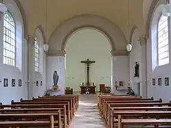Die in knapp 90 Meter Höhe über dem Meeresspiegel gelegene Kirche verfügt über 120 Sitzplätze. Ihre im Ortsbild sichtbare Turmspitze wird von einem Wetterhahn gekrönt.