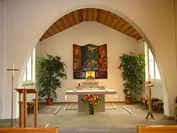 Die Gestaltung des Flügelaltars nimmt traditionelle Motive und moderne Themen gleichermassen auf. Der geöffnete Altar zeigt im Mittelbild die Jünger Jesu auf dem See Genezareth im Seesturm. Petrus läuft auf dem Wasser zum auferstandenen Christus und ist im Begriff zu ertrinken. Jesu ruft Petrus und den Jüngern zu: Ihr Kleingläubigen, habt keine Furcht, ich bin es. Auf dem rechten Flügel sind unten die Speisung der Fünftausend und oben die Heilung eines Kranken zu sehen. Auf dem linken Flügel befindet sich unten die Darstellung der Jüngerinnen und Jünger Jesu. Ein Spruchband deutet die Szene mit folgenden Worten Jesu: Wenn jemand mich liebt, wird er an meinem Wort festhalten. Im oberen Teil des linken Altarflügels ist eine Dämonenaustreibung zu sehen. Die geschlossenen Flügel zeigen uns den Propheten Jesaja, umgeben von seinen Visionen. Der linke Flügel thematisiert den Advent und zeigt den Dreiklang Ankunft (Weihnachtsszene) – Friede (Löwe und Rind liegen friedlich nebeneinander) – Rettung (Jesus als der Gute Hirte trägt ein Lamm auf seinen Schultern). Auf dem rechten Altarflügel wird die Fastenzeit thematisiert, indem der Prophet Jesaja in allem Unheilsgeschehen von Krieg, Unrecht, Ungerechtigkeit und Zerstörung das Ankommen Gottes im leidenden Gottesknecht erkennt.[13]