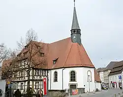 Das Kirchenschiff der im Kern mittelalterlichen Saalkirche tritt mit einer Achse und dem dreiseitig abgeschlossenen Chor aus dem Baukörper des Hospitals heraus. Im Obergeschoss öffnet es sich mittels Emporen zu den anliegenden Räumen. Im Jahr 1490 wurde an der Ostseite des Chors die Sakristei angebaut. Auf dem Dachfirst erhebt sich seit 1688 ein achteckiger, schiefergedeckter, mit einem spitzen Helm bedeckter Dachreiter, der die Turmuhr und den Glockenstuhl beherbergt. Zur Kirchenausstattung gehört der Altar, der 1774 von Johann Bernhard Kamm gebaut wurde. Die Kanzel wurde um 1700 errichtet.