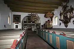 Im Chorraum befinden sich an der Südseite ein Chorgestühl von etwa 1600 und an der Nordseite eine Sakristei von 1840. Hinter dem Altar ist ein eiserner Opferkasten in die Wand eingelassen. Altarleuchter und Abendmahlsgeschirr stammen aus dem 16. bis 18. Jahrhundert.