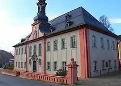 Anstelle des Hospitals aus dem frühen 14. Jahrhundert wurde nach einem Entwurf von Johann Jakob Michael Küchel 1738–39 ein Neubau errichtet. Das zweigeschossige, mit einem Walmdach bedeckte Gebäude besteht aus je vier Achsen beidseits eines Risalits aus drei Achsen, der mit einem Volutengiebel mit der Turmuhr bedeckt ist, hinter dem sich eine Welsche Haube mit dem Glockenstuhl erhebt. Die Statue der Heiligen Katharina über dem Portal weist auf die dahinter liegende Kapelle hin.